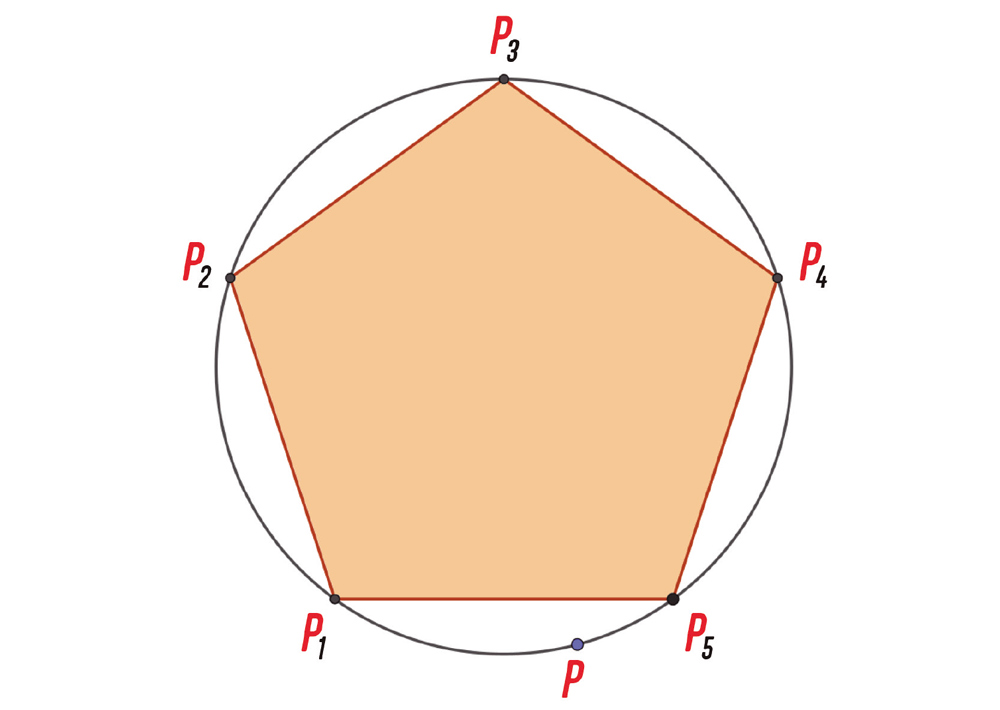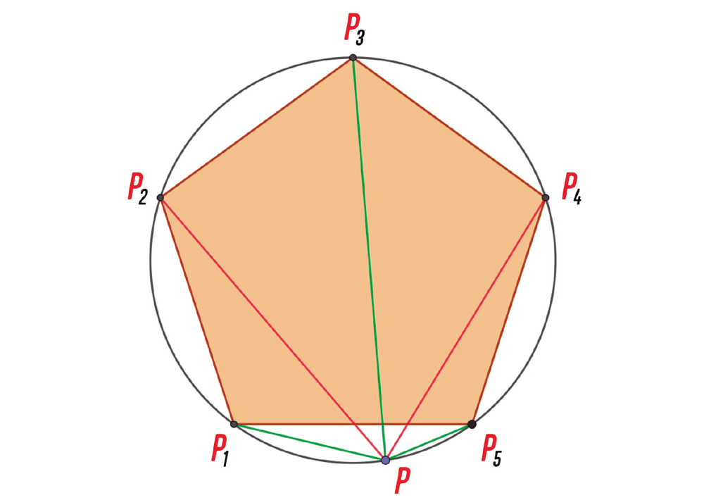 Na minha folha havia um pentágono regular inscrito em um círculo. É mais fácil olhar a figura para entender.