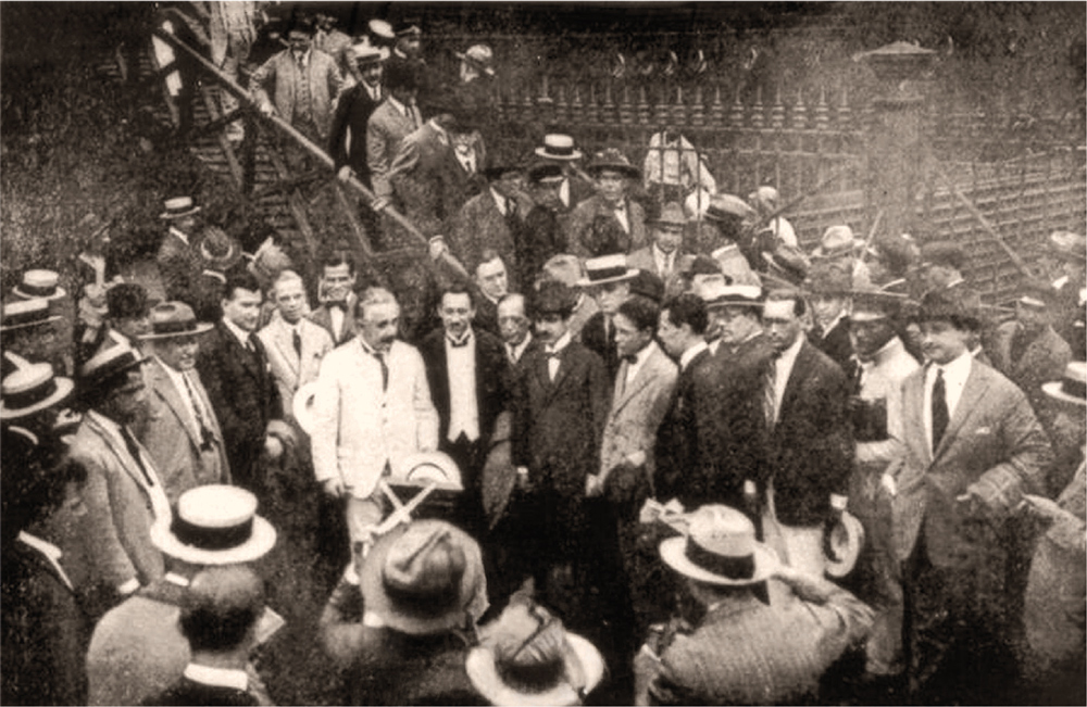 Famosíssimo como já era, Einstein foi convidado para um passeio durante o período em que seu navio ficaria ancorado. Saiu em uma comitiva de sete carros em direção ao Jardim Botânico, circulou pela cidade e terminou em um almoço oferecido pelo jornalista brasileiro Assis Chateaubriand, no Hotel Copacabana Palace, recém-inaugurado.