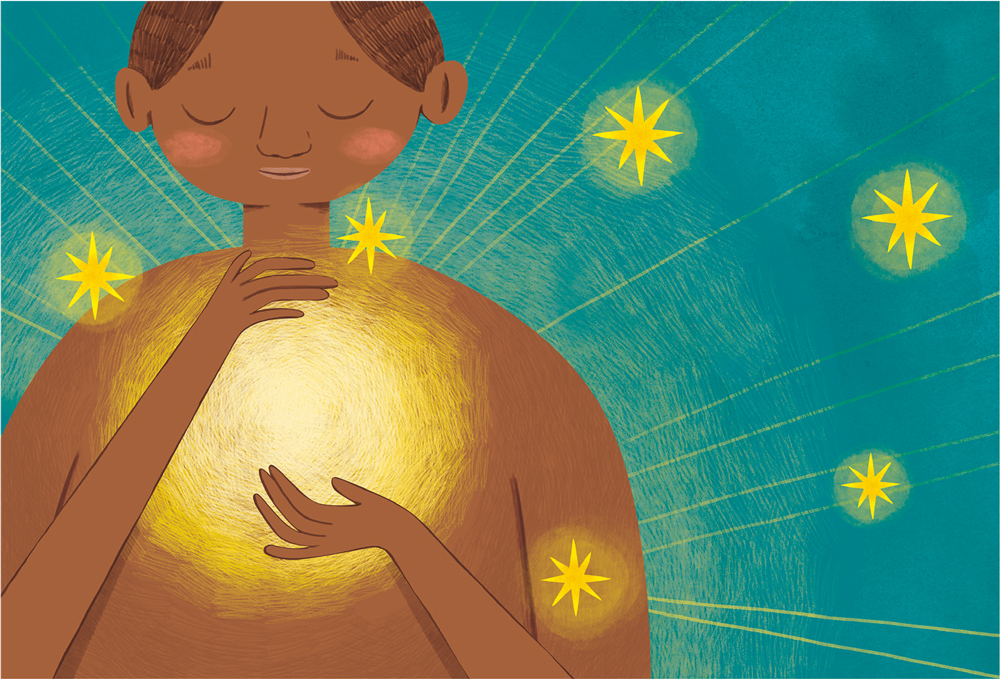 As estrelas vieram por último, as que vemos e as que não conseguimos observar. Assim como fez com a Terra, Amma atirou barro no espaço, mas em pedaços menores, como se arremessasse várias pedrinhas para o alto. Assim, os pontinhos de luz se espalharam no céu, onde parecem piscar sem parar.