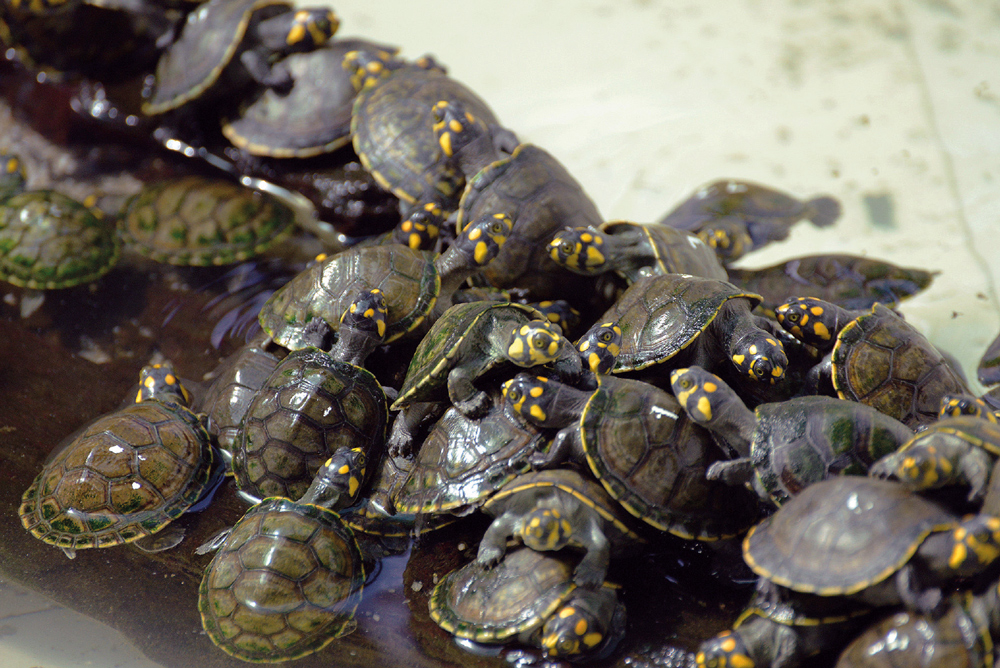 O sexo da maioria das tartarugas, como o tracajá, é definido pela temperatura na qual os ovos são chocados.