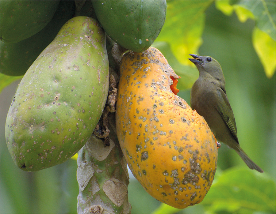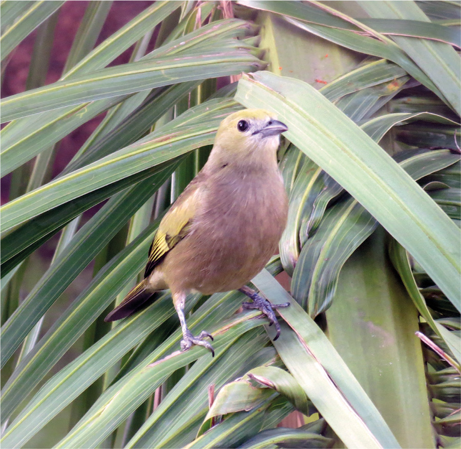 O sanhaçu-do-coqueiro (Tangara palmarum) tem a maior parte do corpo em tons esverdeados e um canto forte e metálico. Essa espécie pode ser encontrada em áreas tropicais e subtropicais. Ao olharmos por nossas janelas, tanto no campo quanto nas grandes cidades, podemos nos surpreender com a sua presença, marcada com seu chilrear, ou seja, com seu canto.