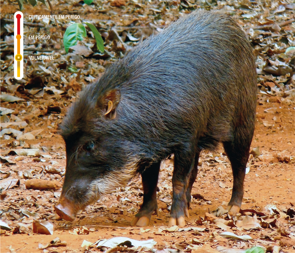 Mas se queixadas não são porcos, o que são? Queixadas são pecarídeos, nome técnico dado pelos cientistas para as espécies da família dos taiaçuídeos. Elas têm características próprias! Apresentam pelo escuro e espetado, sendo a região do queixo coberta por pelo branco. Quando se sentem ameaçadas, batem as mandíbulas bem forte, produzindo um estalo muito alto com o queixo. Daí o nome… queixadas!