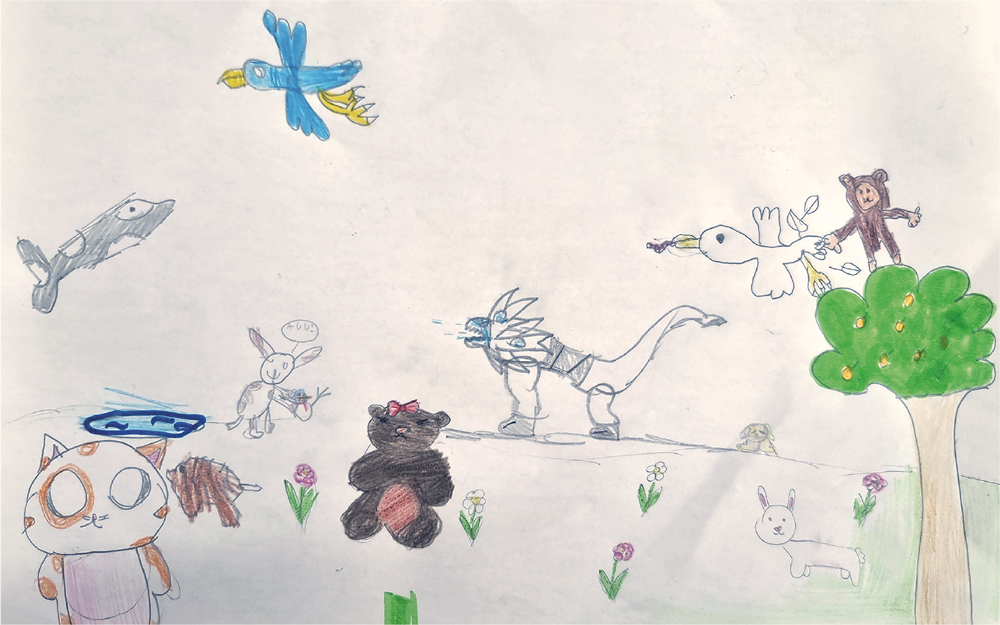 Oi, CHC! Nas aulas de português realizamos algumas leituras de textos publicados pela revista e a que chamou mais a nossa atenção foi o texto Os bichos se divertem, publicado na CHC 345. Nós gostamos e achamos muito interessante, pois amamos os animais. Com a leitura, aprendemos mais sobre eles e suas brincadeiras. Fizemos um desenho sobre o tema e esperamos que gostem. Abraços!
