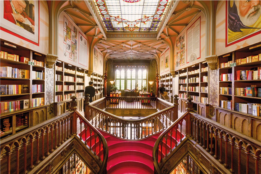 A fila na porta já dá pistas de que algo acontece por ali. É uma construção exuberante, em estilo neogótico. Dentro, a escadaria vermelha e o enorme vitral colorido no teto explicam por que esse lugar é chamado de “a livraria mais bonita do mundo”. Sim, é a Livraria Lello, que fica na cidade do Porto, em Portugal.