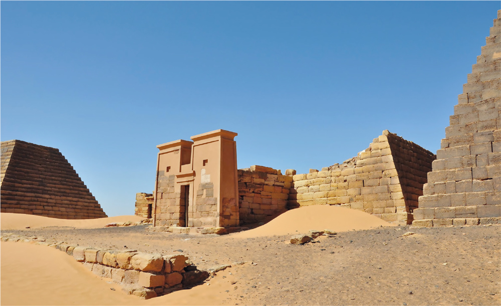 Um dos reinos mais importantes na Núbia era chamado de Cuxe, que foi dominado pelo Egito por um tempo. Nesse período, os núbios acabaram influenciados pela cultura da sociedade egípcia. Tiveram contato com a adoração a deuses como Hórus, Ísis, Osíris e Rá. E conheceram costumes como o uso de sarcófagos e tumbas em forma de pirâmide. Assim, quando morriam, os reis de Cuxe eram enterrados em pirâmides localizadas em cemitérios próximos da quarta catarata do Nilo.